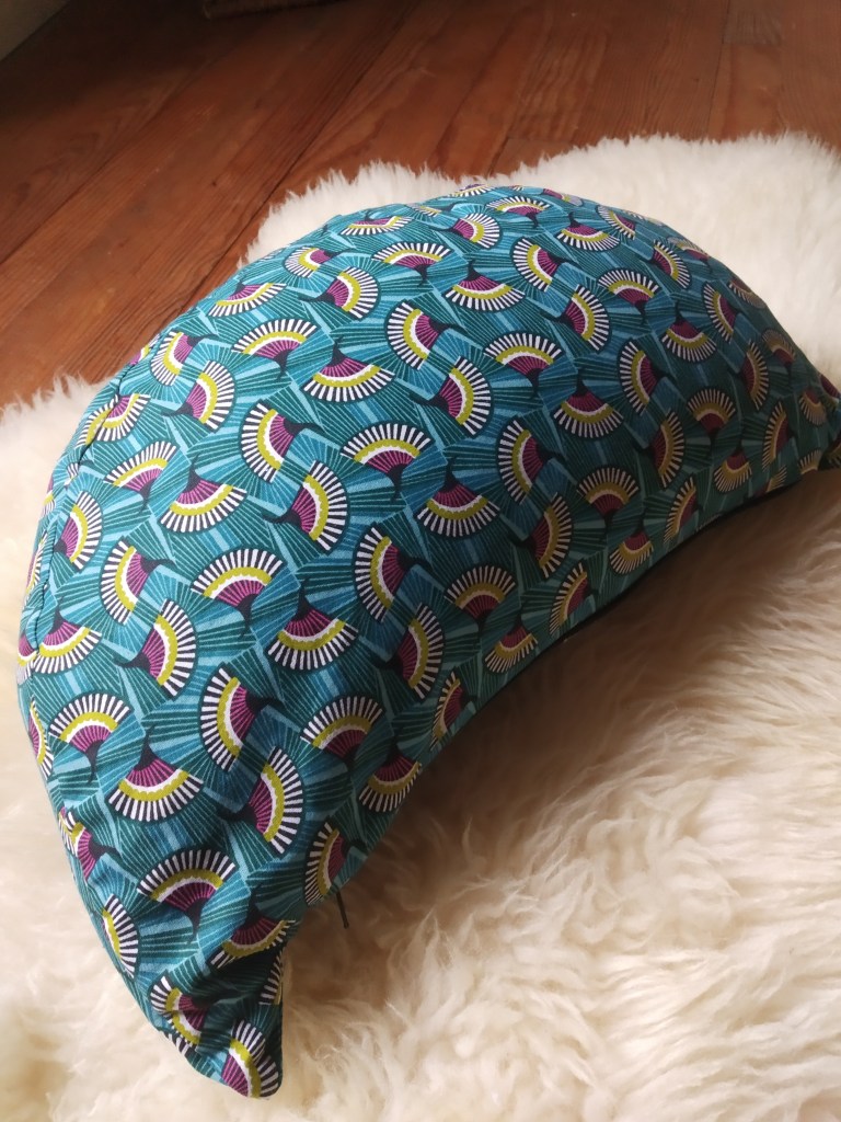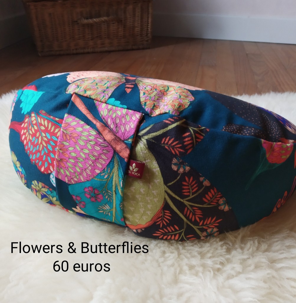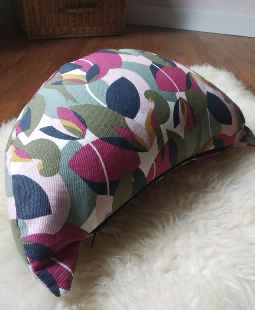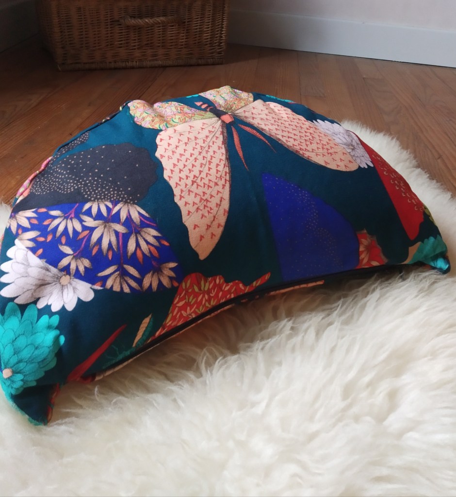 Je fabrique chaque coussin à la main avec soin, depuis chez moi dans la campagne bourguignonne. C’est un travail de conscience que j’affectionne tout particulièrement, tout comme le choix des tissus, tous en édition limitée selon arrivages (maisons de tissu françaises). Ce design de coussin procure une assise indéniablement agréable même pour les débutants en méditation.